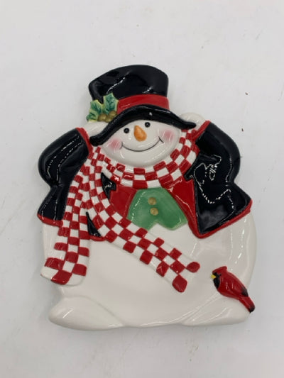 Fitz and Floyd Ceramic Holly Jolly Snowman Plate