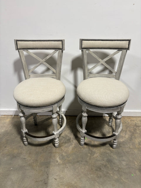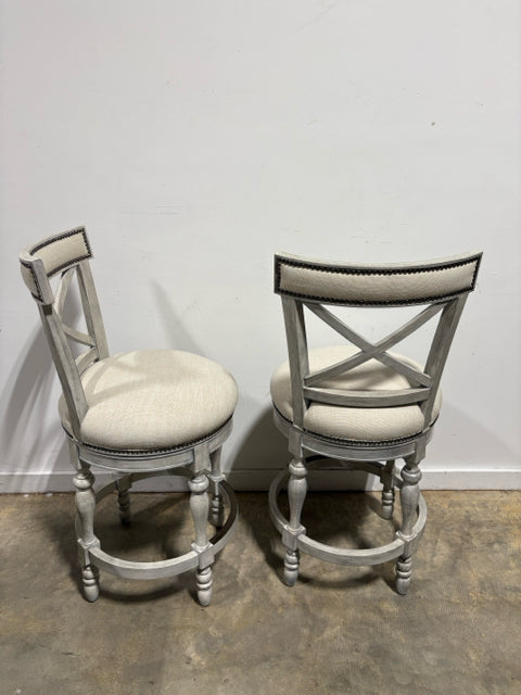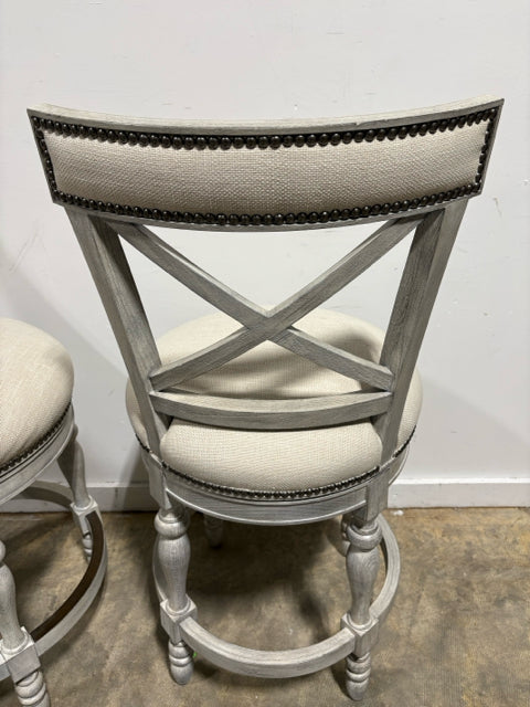 Set of 2 Frontgate Griffith X Back Cream Swivel Counter Stools
