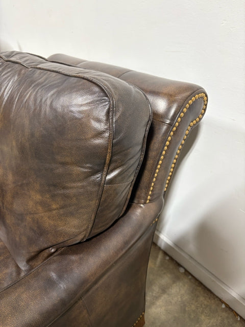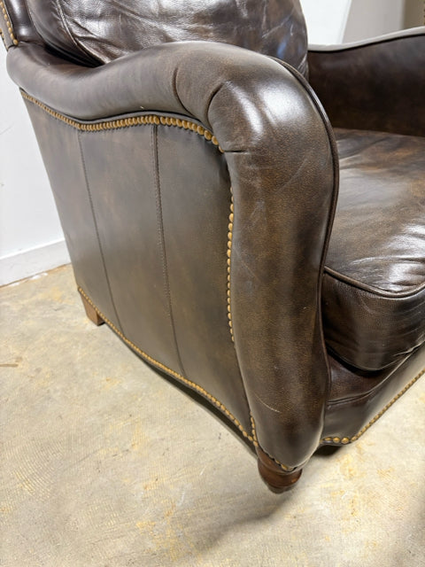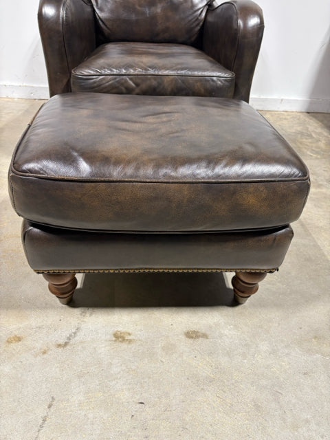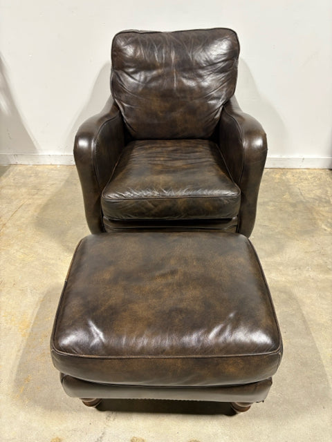 Sam Moore Chocolate Brown Leather Chair With Gold Nailheads And Ottoman