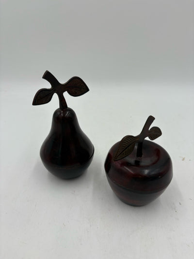 Set Of 2 Metal Apple And Pear Containers With Lids