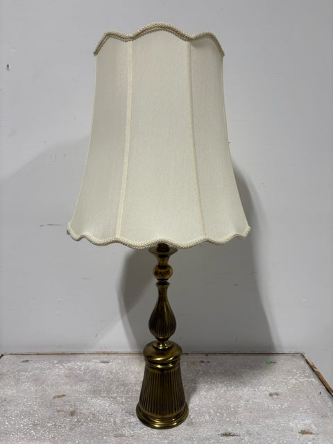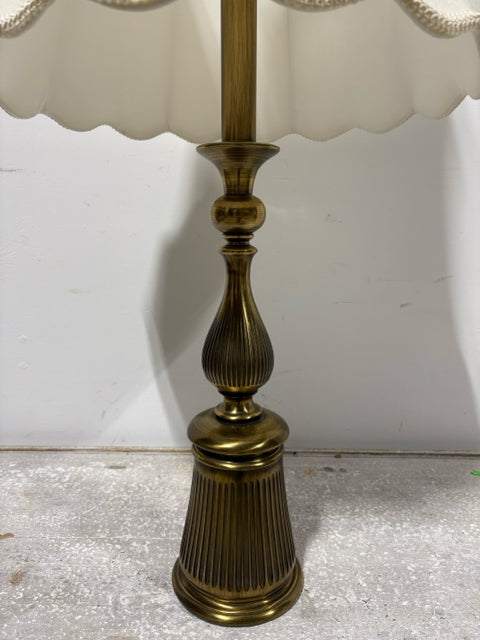 Stiffel Brass Base Table Lamp With Scalloped Cream Shade