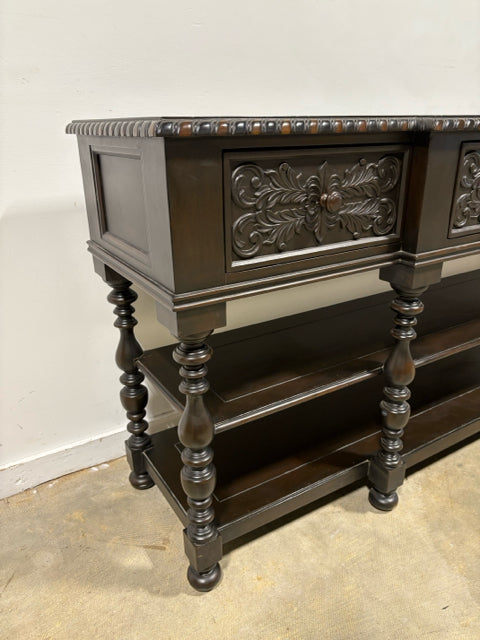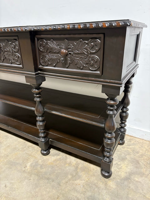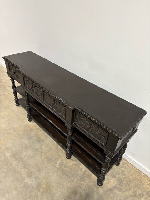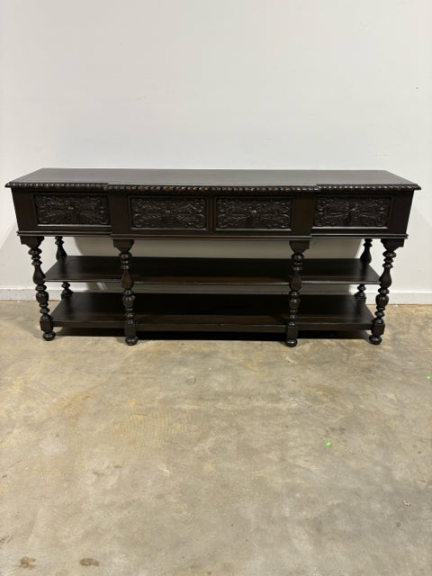 Dark Wood Carved Console With 4 Drawers