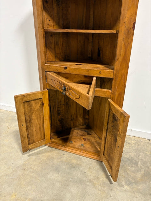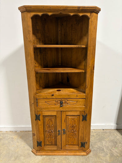 Carved Wooden Corner Cabinet With One Drawer And Two Doors