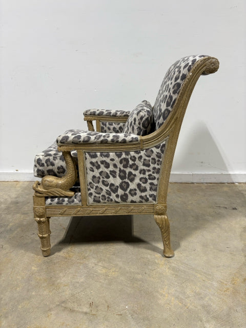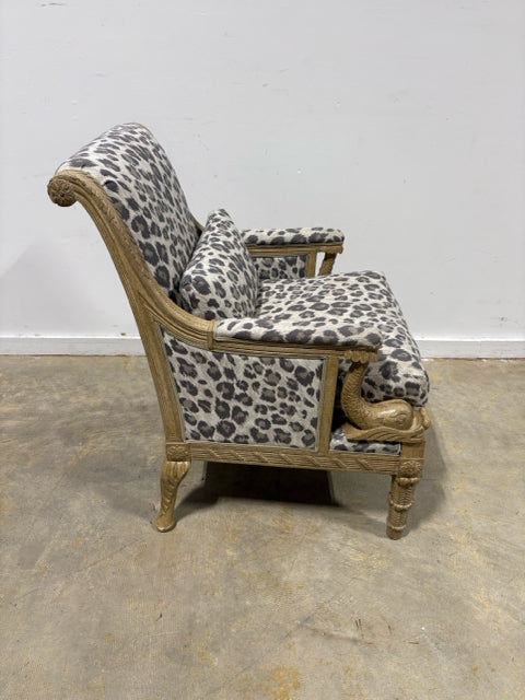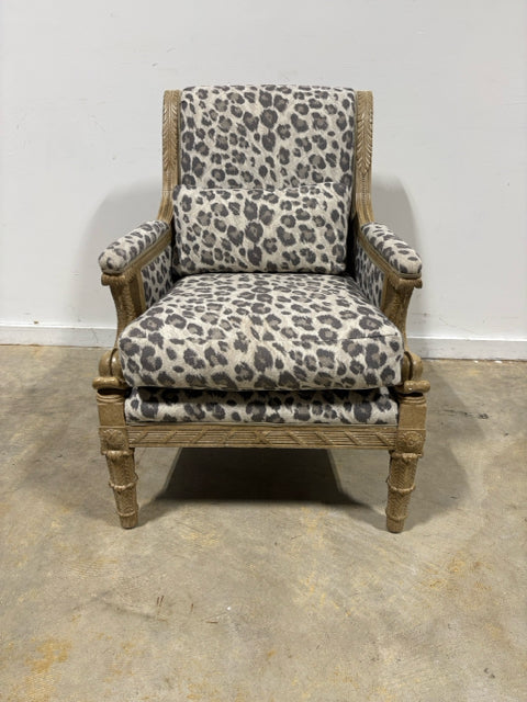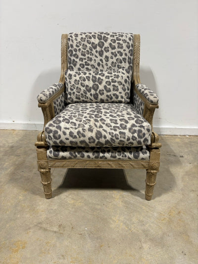 Regular price $729.00A stunning statement piece from luxury maker Marge Carson, this arm chair blends bold style with classic craftsmanship. The hand-carved light wood frame features intricate detailing, sculptural arms, and elegant tapered legs. Upholstered in a textured leopard print fabric, it offers both comfort and eye-catching personality.