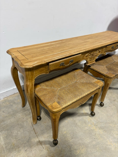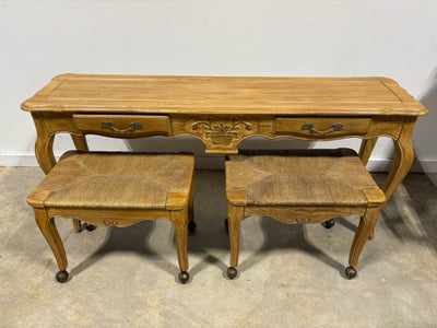 Davis Cabinet Console With 2 Drawers And 2 Rolling Stools