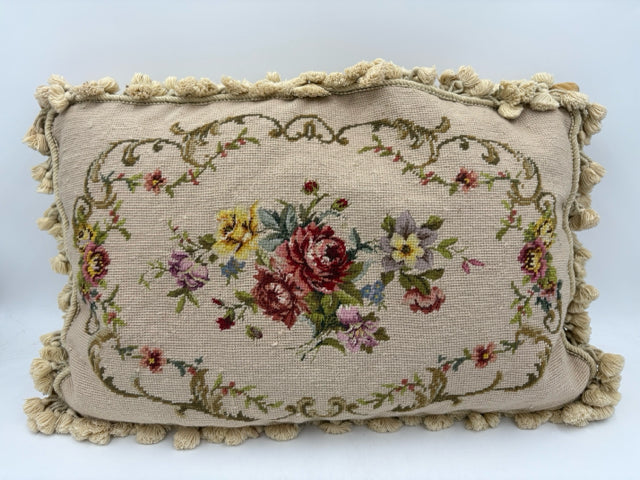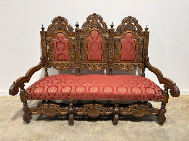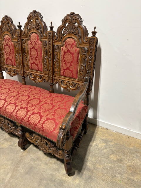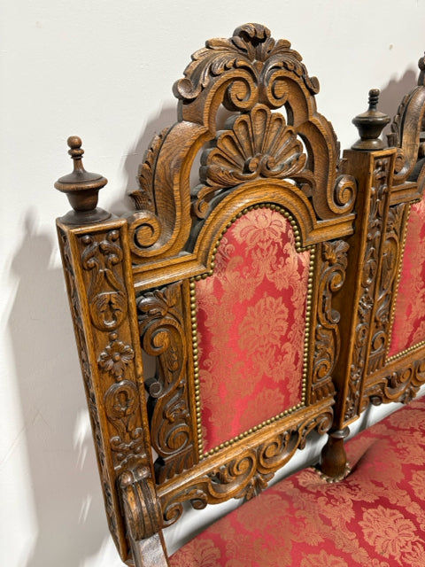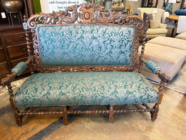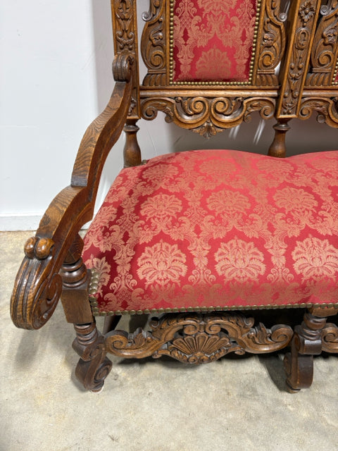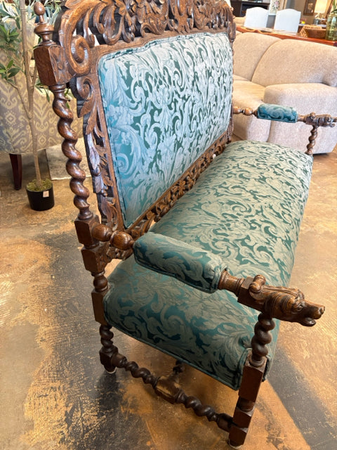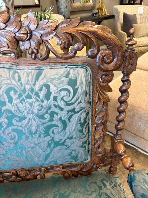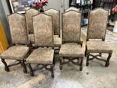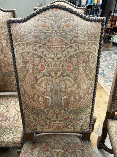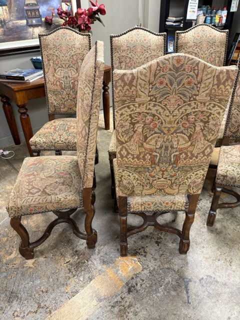 Set of 7 Carved Wood Tapestry Dining Room Chairs