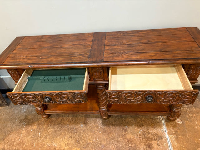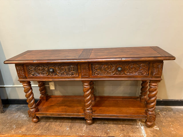Broyhill Wooden Buffet with 2 Drawers & Barley Twist Legs