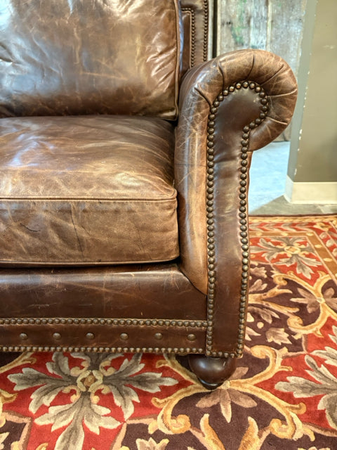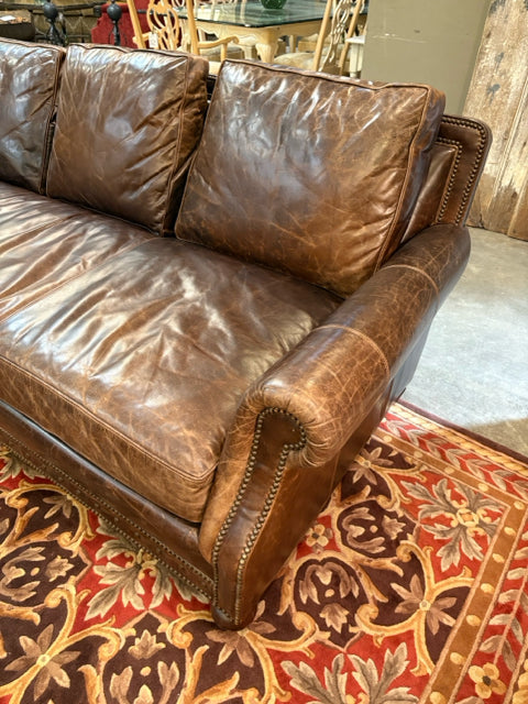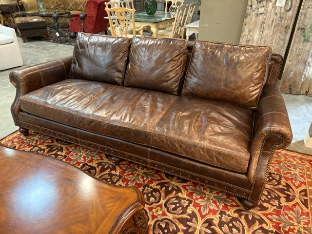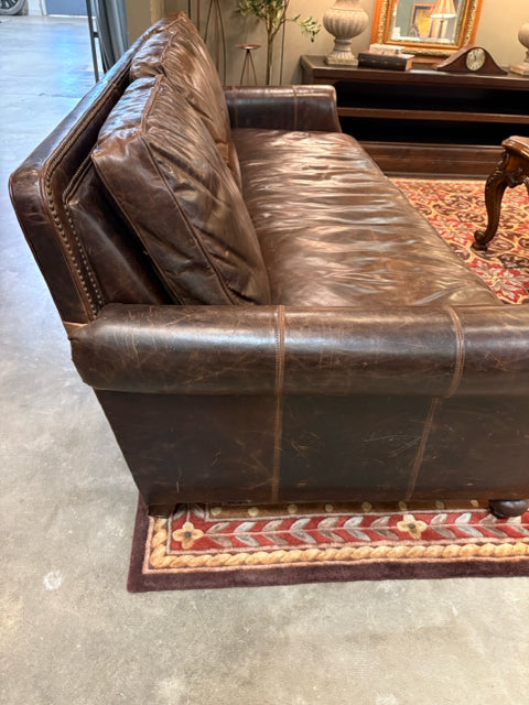 Bernhardt Dark Brown Leather Sofa With Nailheads
