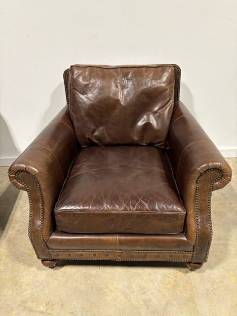 Bernhardt Dark Brown Leather Chair With Nailheads