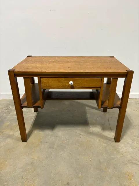 Mission Style Oak Desk With One Drawer And 2 Shelves