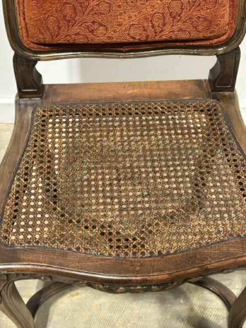 French Provencial Side Chair With Cane Seat And Dark Red Back