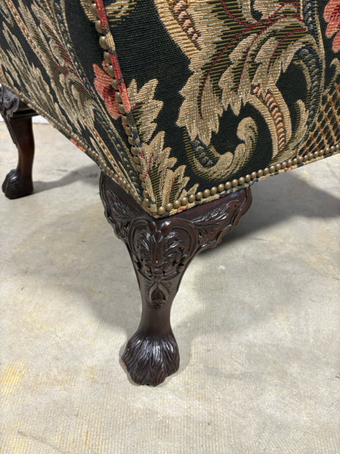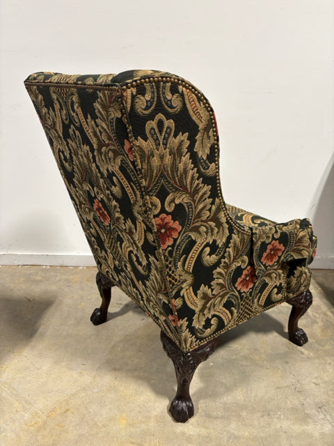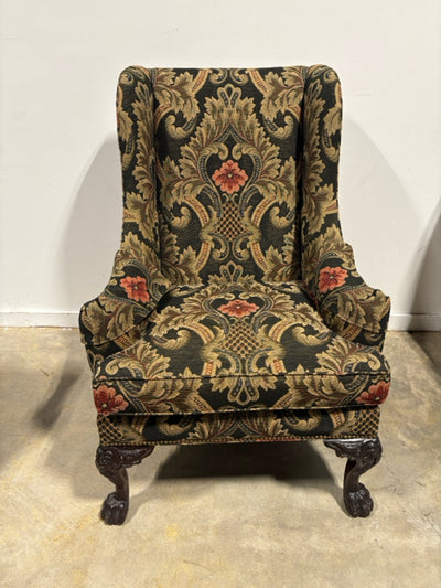 Henredon Green And Gold Floral Wingback Chair