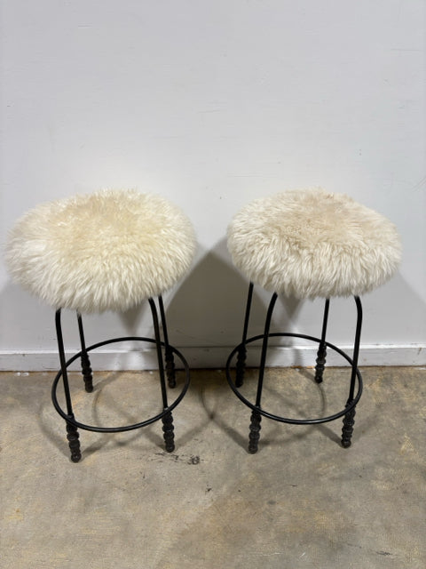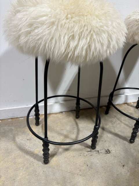 Set of 2 Faux Fur Swivel Bar Stools with Metal Bases