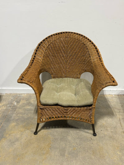 Wicker Chair With Bead Accents And Cushion Living Room Chair