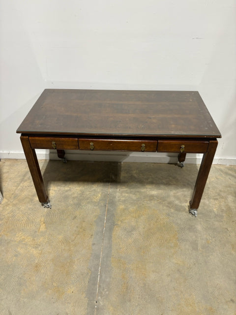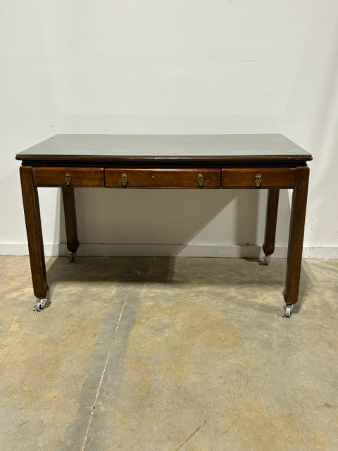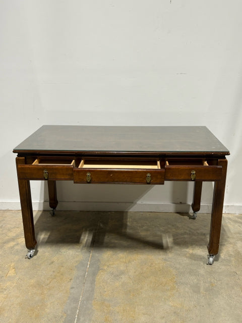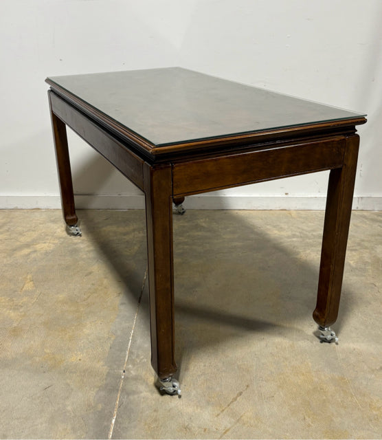 3 Drawer Wooden Rolling Writing Desk With Glass Top