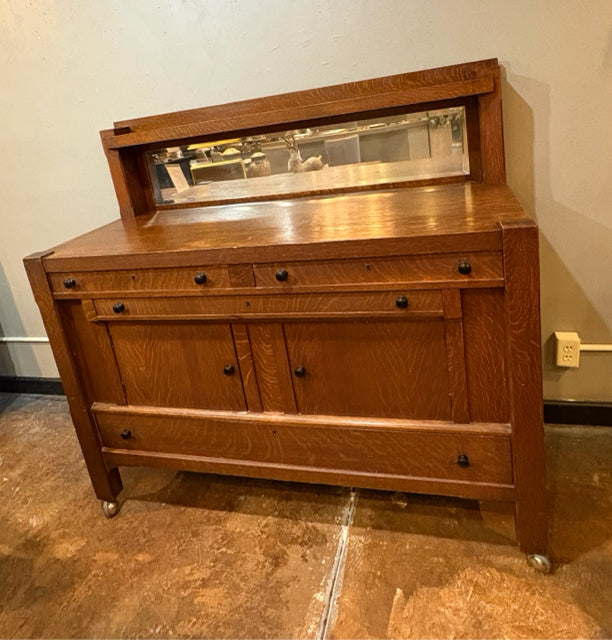 Mission Tiger Oak Sideboard With Mirrored Gallery