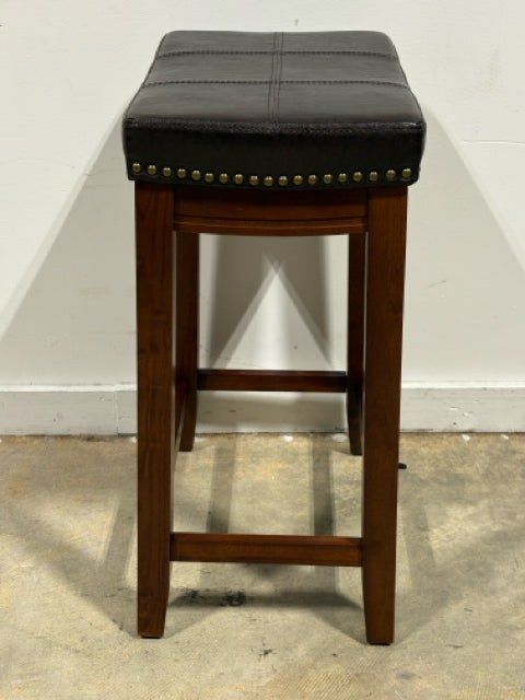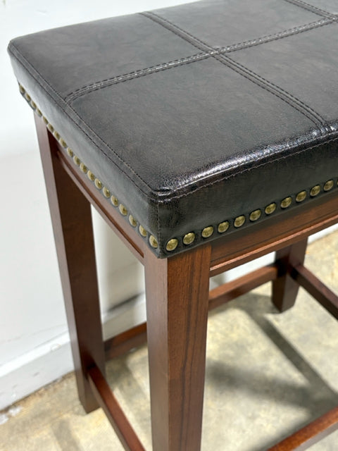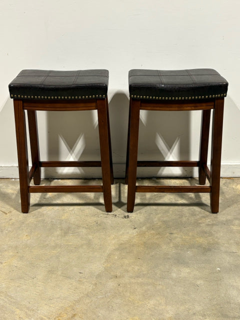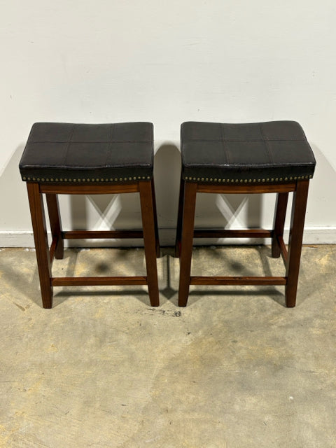 *NEW* Set Of 2 Linon Home Wood Counter Height With Leather Seats Bar Stools