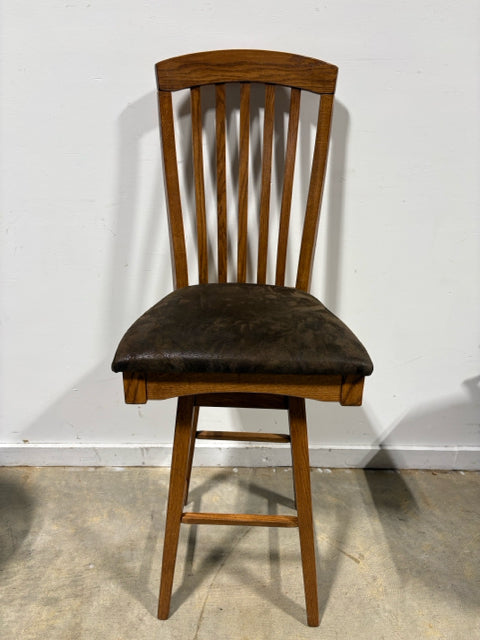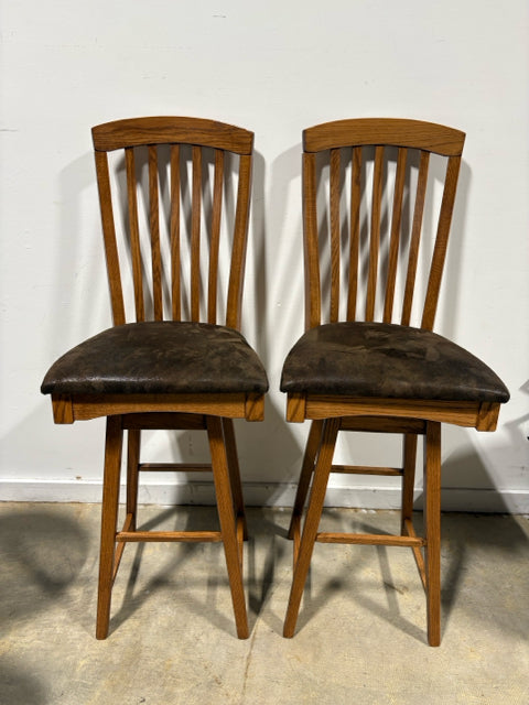 Set of 2 Country Home Furniture Pecan Bar Stools with Brown Suede Seats