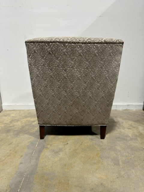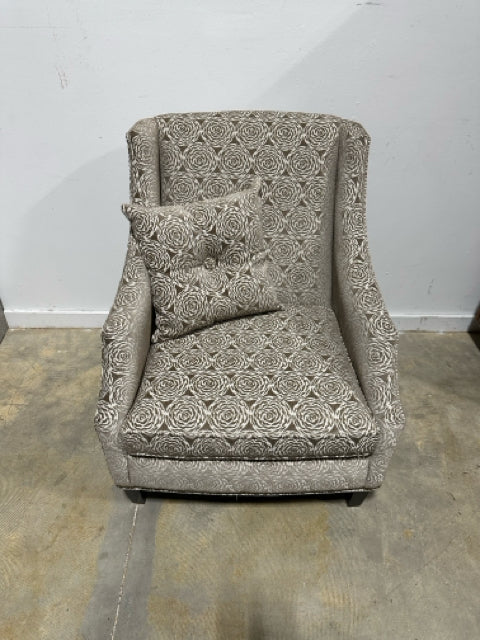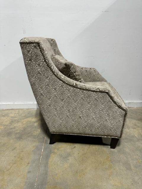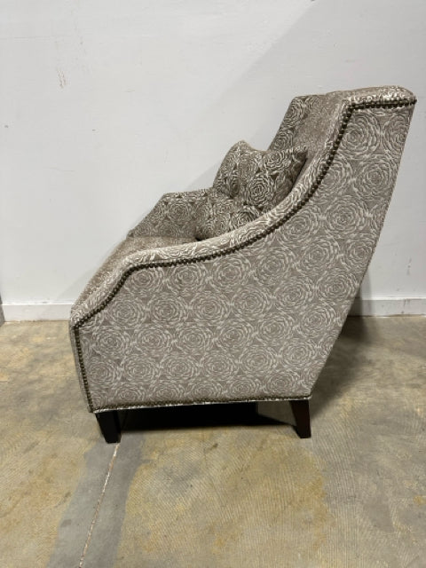 Tan Rosette Upholstered Arm Chair with Nailheads & Pillow