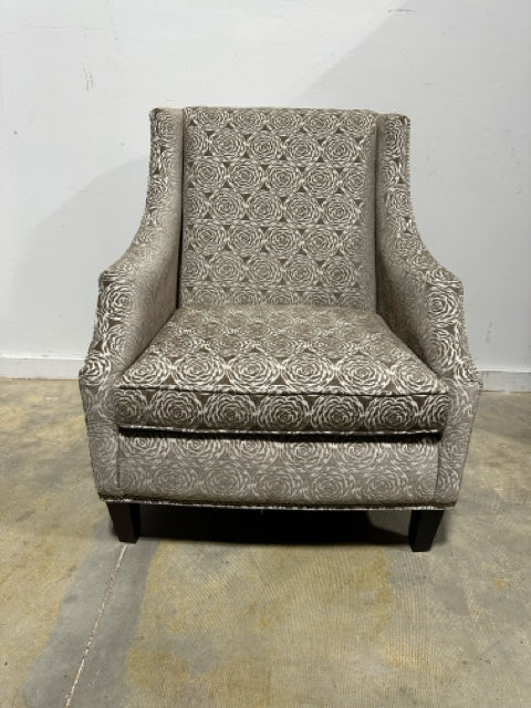 This beautiful C.R. Laine arm chair features a sophisticated cream-and-tan abstract upholstery with a soft, inviting texture. Classic lines, a supportive back cushion, and gently rolled arms make this chair as comfortable as it is stylish. Perfect for living rooms, bedrooms, or sitting areas needing a designer-quality accent piece.