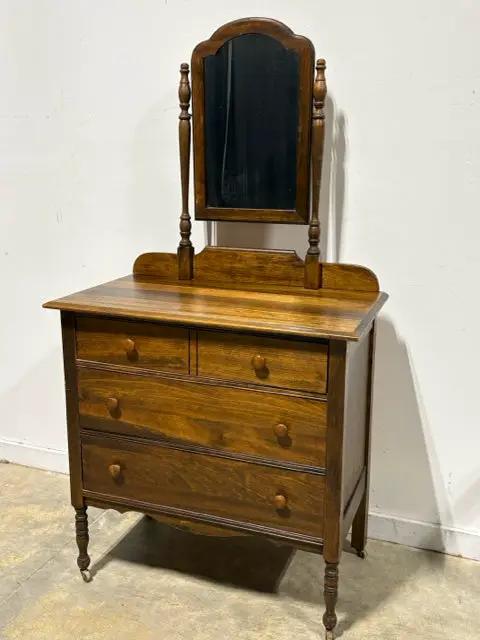Vintage Solid Wood 3 Drawer Dresser with Swivel Mirror- Height = 64"h