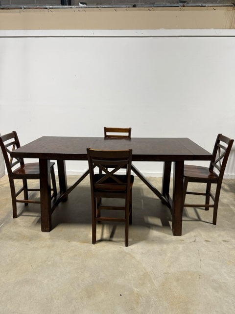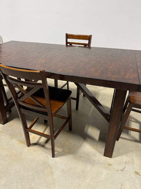 Dark Wood Bar Table with 4 Stools & 2 Leaves