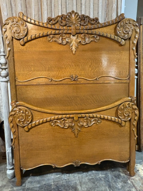Vintage Full Carved High Back Bed With Footboard And Siderails