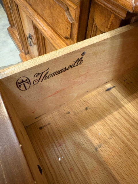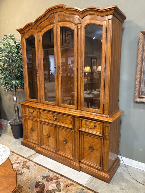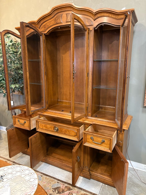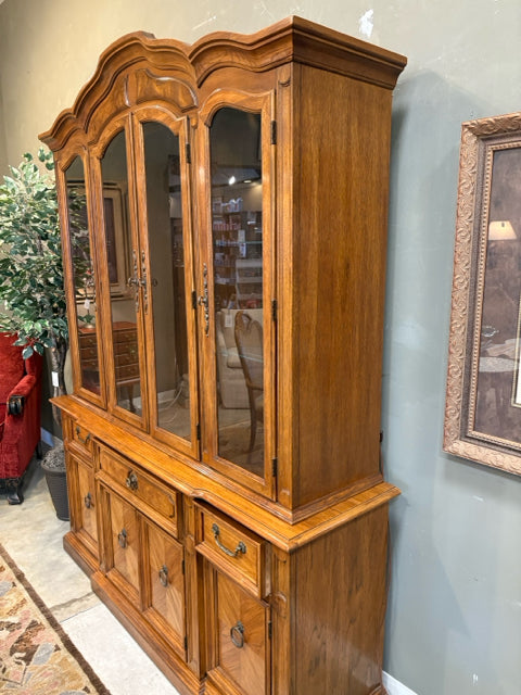 Thomasville Glass Front Wooden Hutch With 3 Drawers And 8 Doors