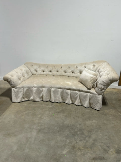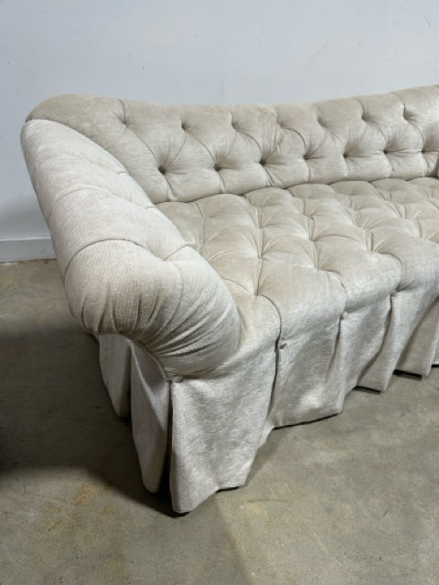 Velvet Tufted Skirted Sofa with 2 Lumbar Pillows