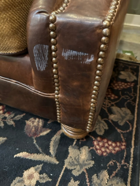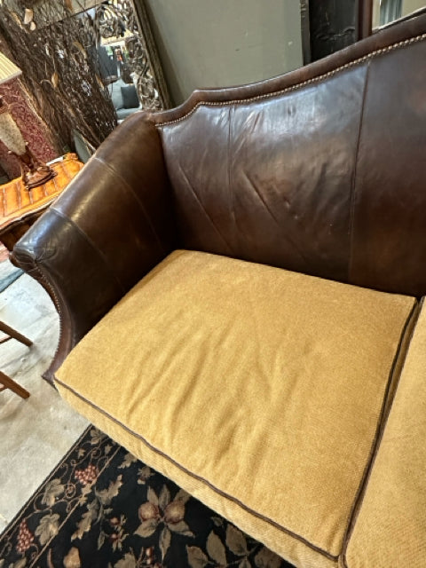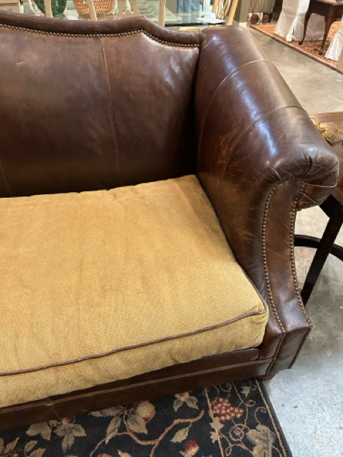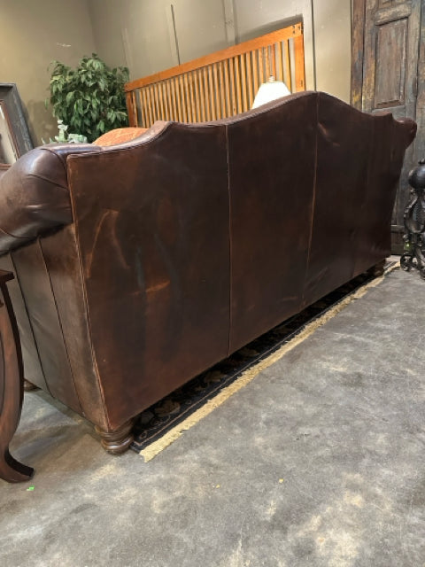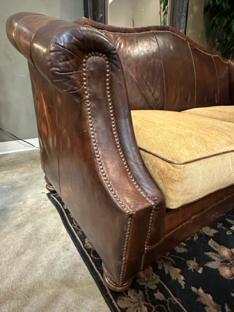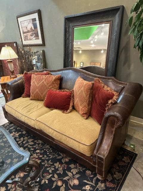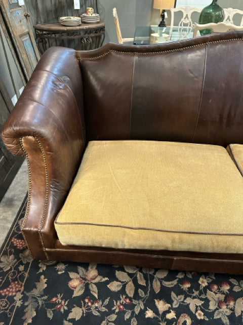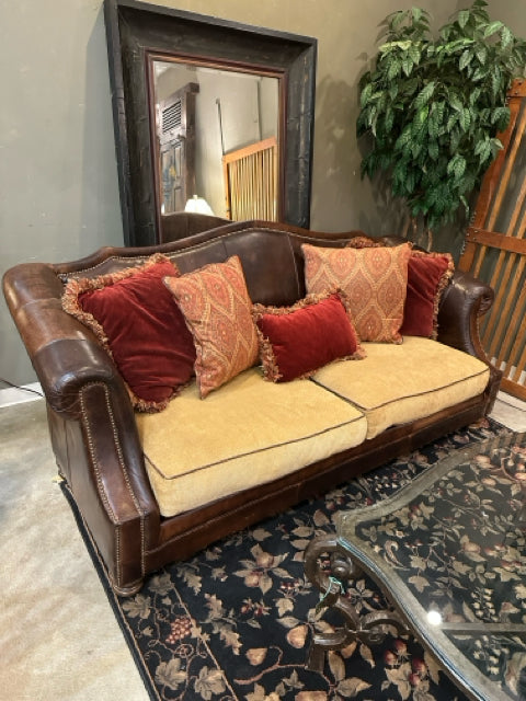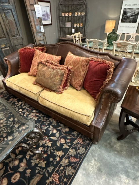 Paul Robert Camelback Leather Sofa with 2 Upholstered Cushions & 6 Pillows