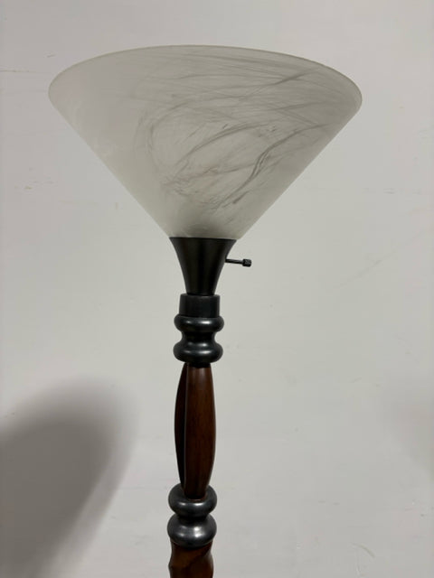 Twisted Wood Base Floor Lamp with Milk Glass Shade