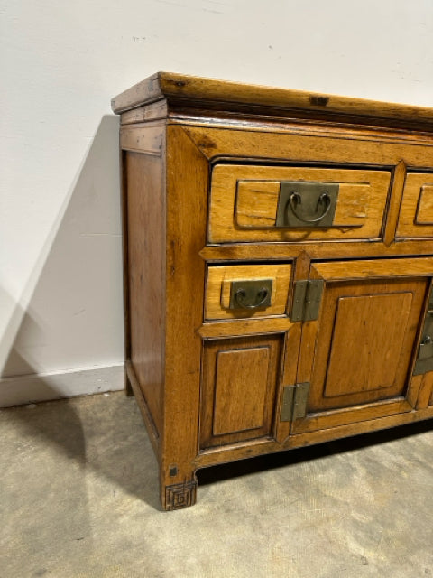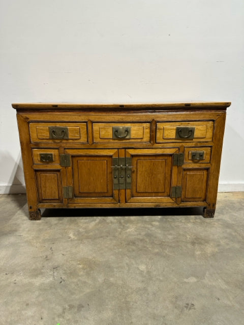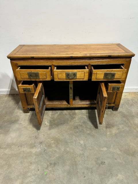 Light Wood 5 Drawer 2 Door Asian Cabinet