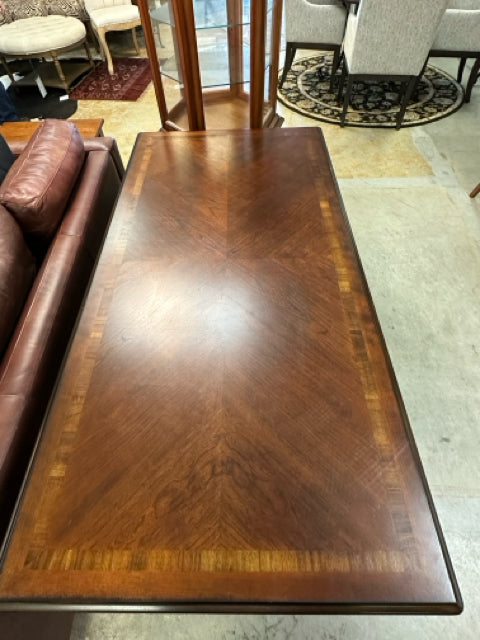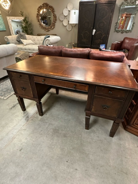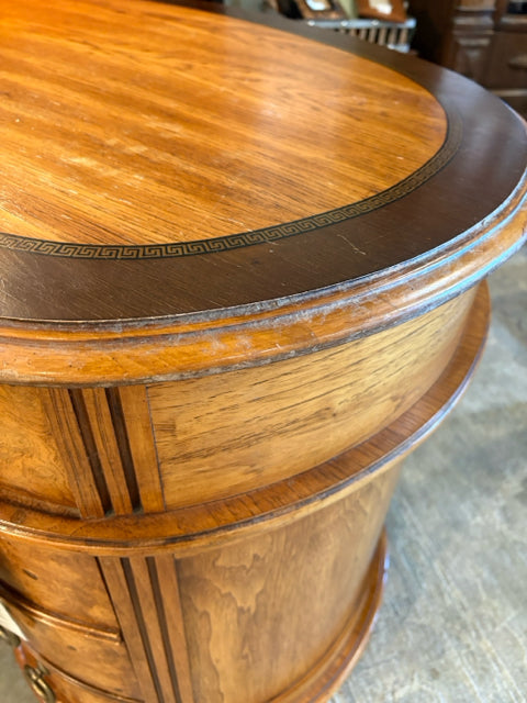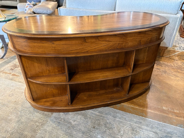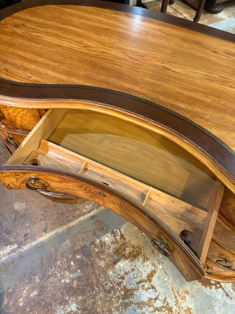 Henredon Kidney Shaped Burled Wood Desk With Greek Key Inlay