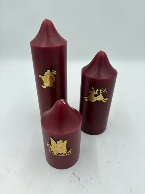Set Of 3 Cranberry Party Lite Christmas Candles