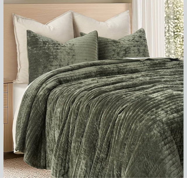 "NEW* Evergrace Full/Queen Olive Green Velvet Quilt with 2 Shams