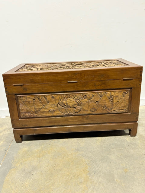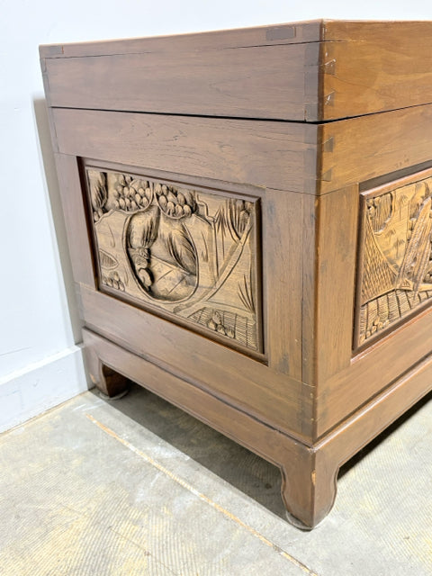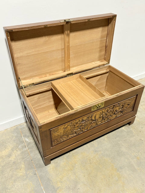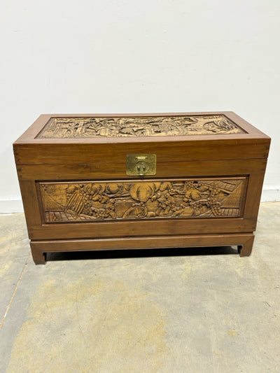 Regular price $47.70Carved Asian Style Wooden Trunk With Tray And Lock