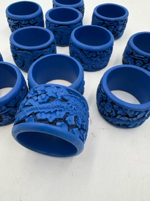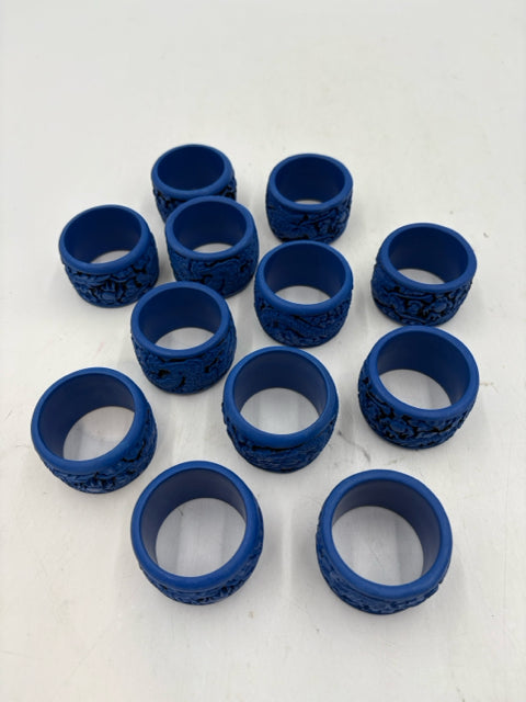 Set Of 12 Blue Asian Napkin Rings