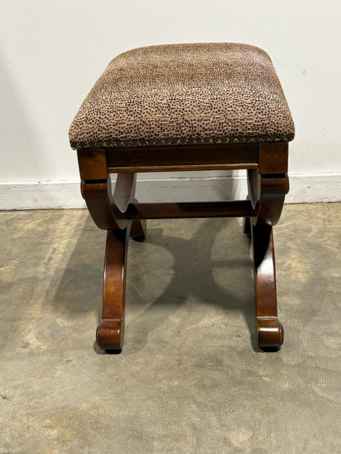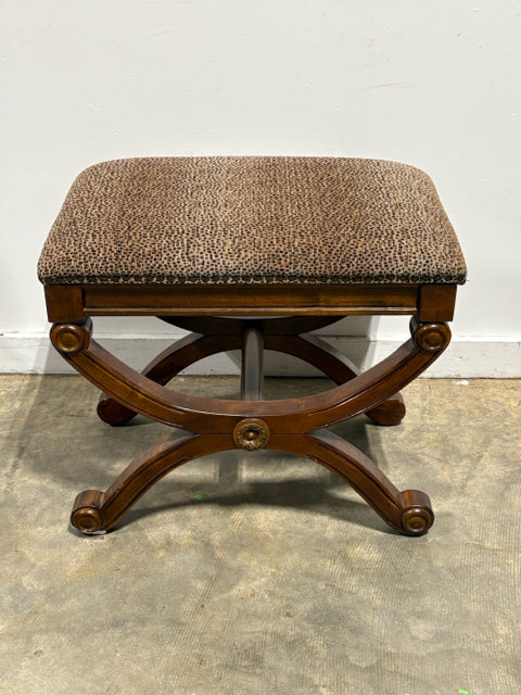 Animal Print Ottoman With Wooden Base