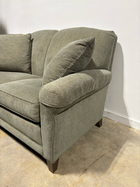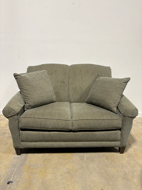 HTL Grey Leather Loveseat With Adjustable Headrests And Chrome Legs