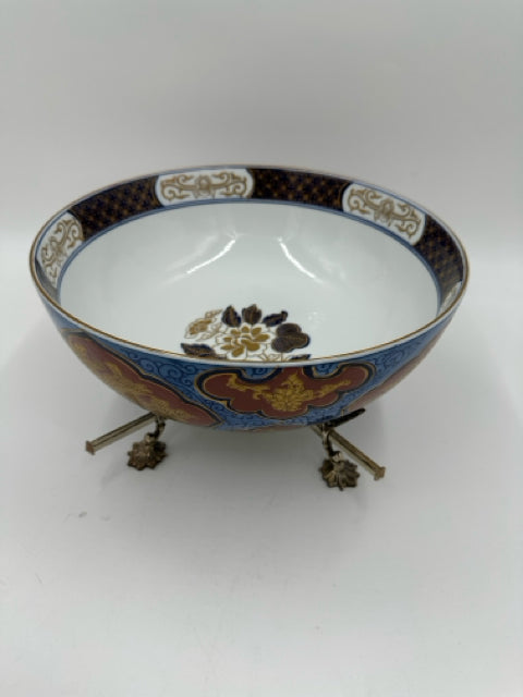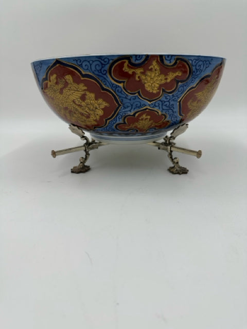 Blue White & Orange Asian Bowl On Adjustable Stand