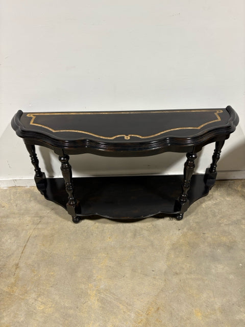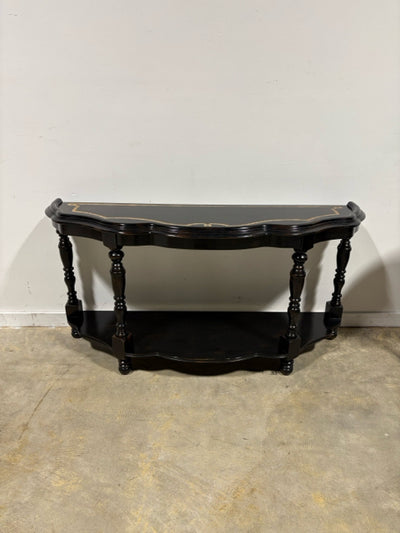 Scalloped Edge Sofa Table With Burled Wood Inlay